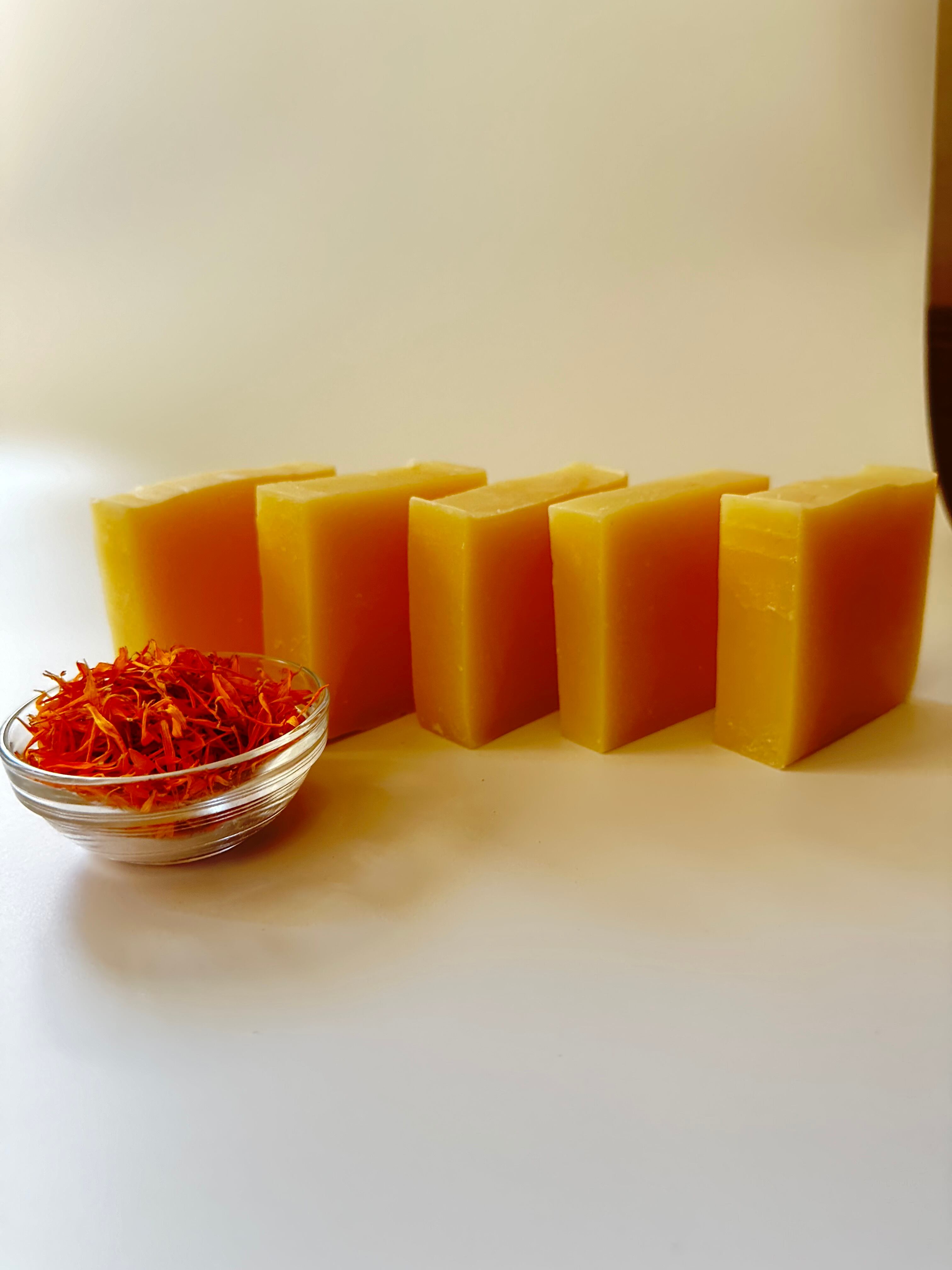 ドライにした花びらのみを、オリーブオイルに3ヶ月つけ込んだ摘出油で作った、ほんのりオレンジ色の石鹸です。